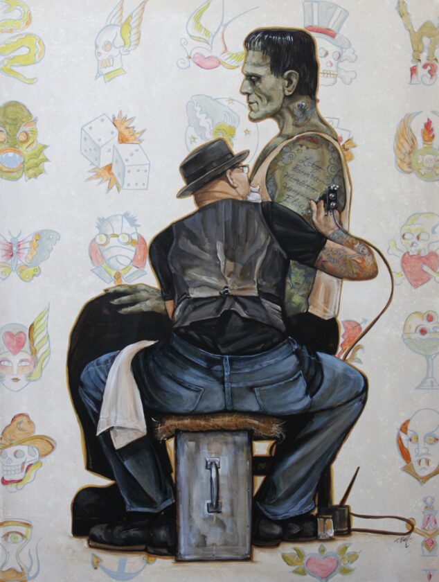“A big way to describe my work and the genre that I’m in is ‘Lowbrow,” he said. “Lowbrow art is the California monster, hot rod, pin-up, and tattoo ink. It’s all about pop culture, thrown into cool situations with beautiful women, and it’s kind of the punk rock of art; art doesn’t have to be so serious.”