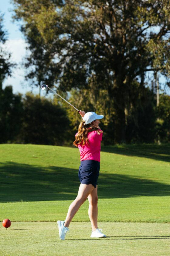 I took up golf about eight years ago. I bought a girly pink golf bag, a set of clubs, golf shoes and cute polo shirts in many colors and designs. I even took some lessons with a local golf pro. Then I went to the driving range a few times with one of my gal pals, who had been playing for many years. It was fun, but not “haha” fun. People at the range seemed pretty serious about their aspirations to be the next Tiger Woods (he wasn’t in as much trouble back in the day).