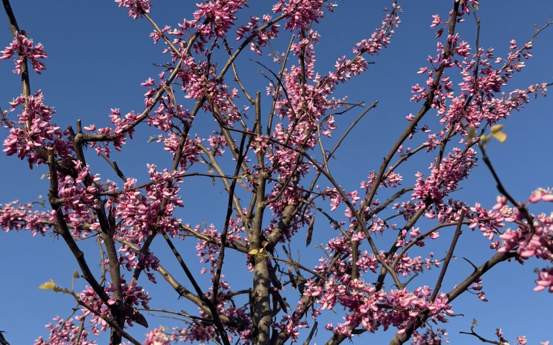 Flowering trees are one of the joys of spring. Eastern redbuds are among these early bloomers and are widely used by homeowners as ornamental landscape trees for their many interesting attributes. This native tree produces lavender-pink flowers that bloom in early spring, providing a source of nectar and pollen for early pollinators such as bees, hummingbirds, and early butterflies like the silvery blue butterfly. Redbud flowers have a unique characteristic called cauliflory, which means that the flowers bloom directly on the bare, older branches and trunk of the tree, instead of on new growth.