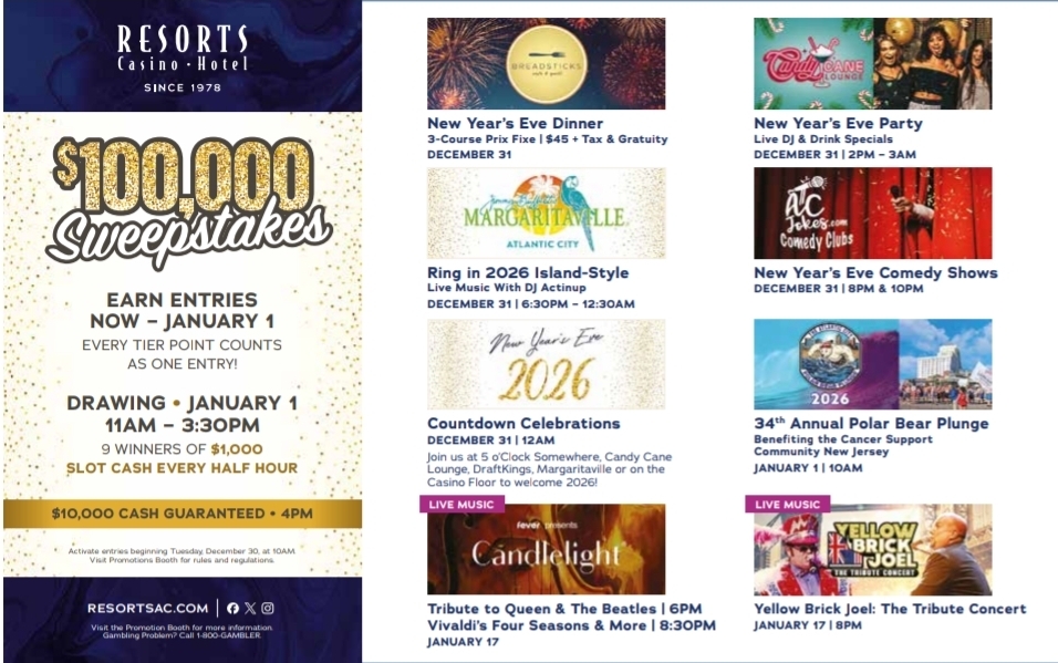Get ready for a fun-filled day on the beach and welcome 2026 with the Brigantine Polar Bears. The event will begin at 11 a.m. with a Veterans Salute, Costume Contest and more. The plunge will take place at noon, followed by post-plunge parties around town. Proceeds benefit the Fisher House.