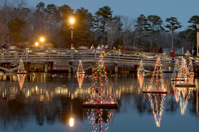 The magic of Smithville comes to life every night with a dazzling light display. Over 50,000 lights magically float in the center of Lake Meone, set to familiar holiday favorites. The show can be seen from both sides of the village, as well as the bridge. While you’re in Historic Smithville, visit the restaurants and shops and take a ride on the train.