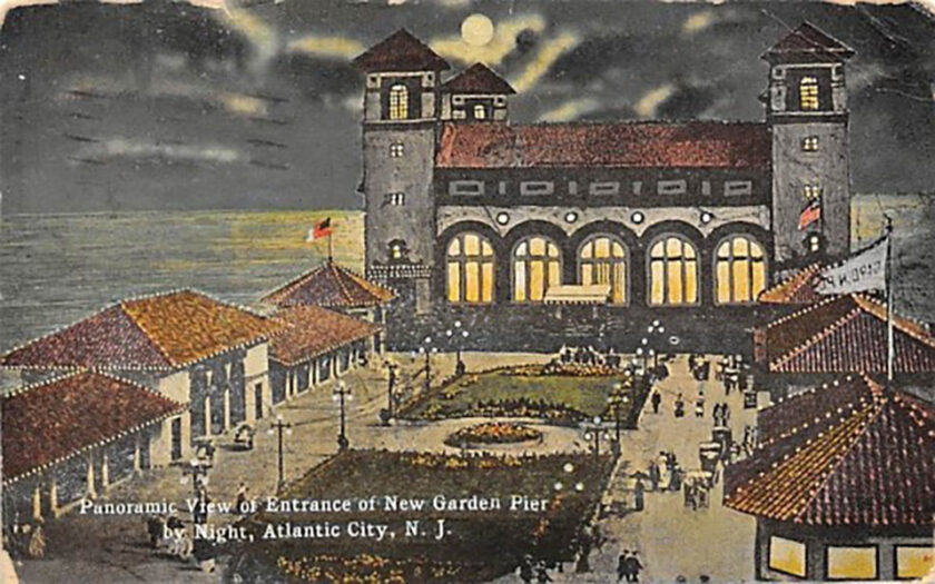 “Garden Pier stood apart from the other piers in Atlantic City,” Heather Perez wrote for The Atlantic City Experience website. “First opening on July 19, 1913, its uptown location placed it away from the frenzied activity of the bustling downtown. The red-tiled roofs and iconic architecture style of the buildings, and the beautifully landscaped gardens gave the pier a formal appearance, which attracted an upscale crowd.”