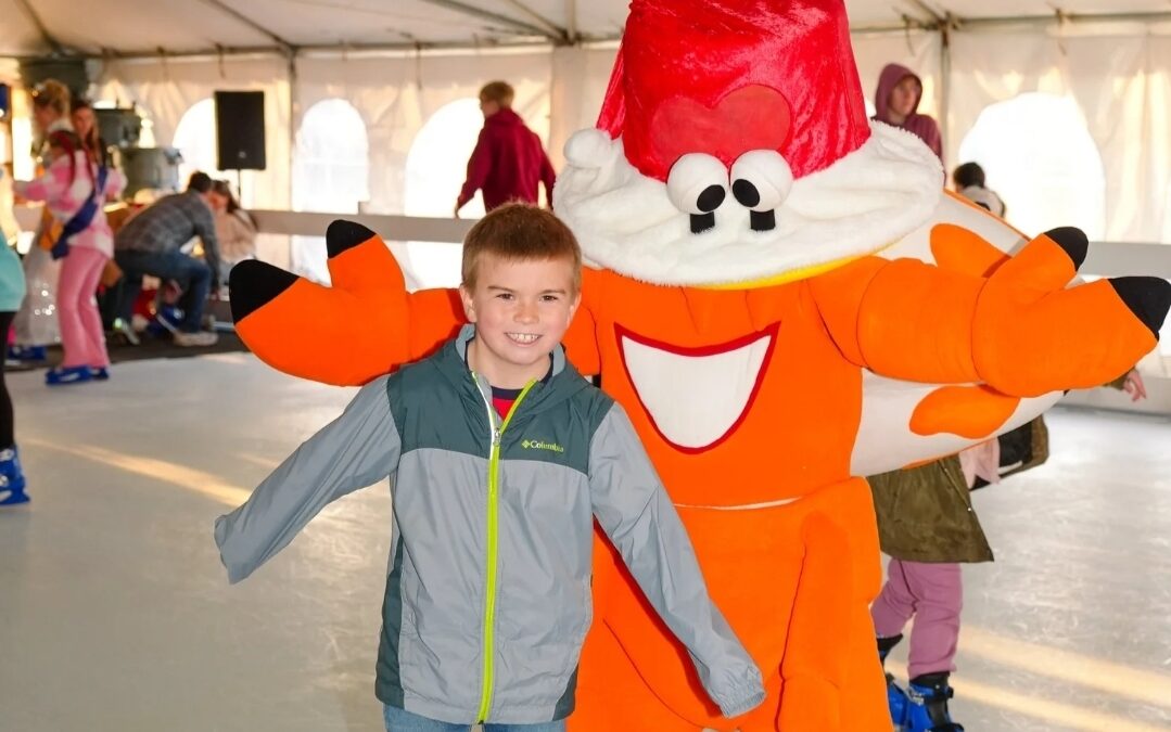 ICE RINK — Synthetic ice-skating rink with skates provided.