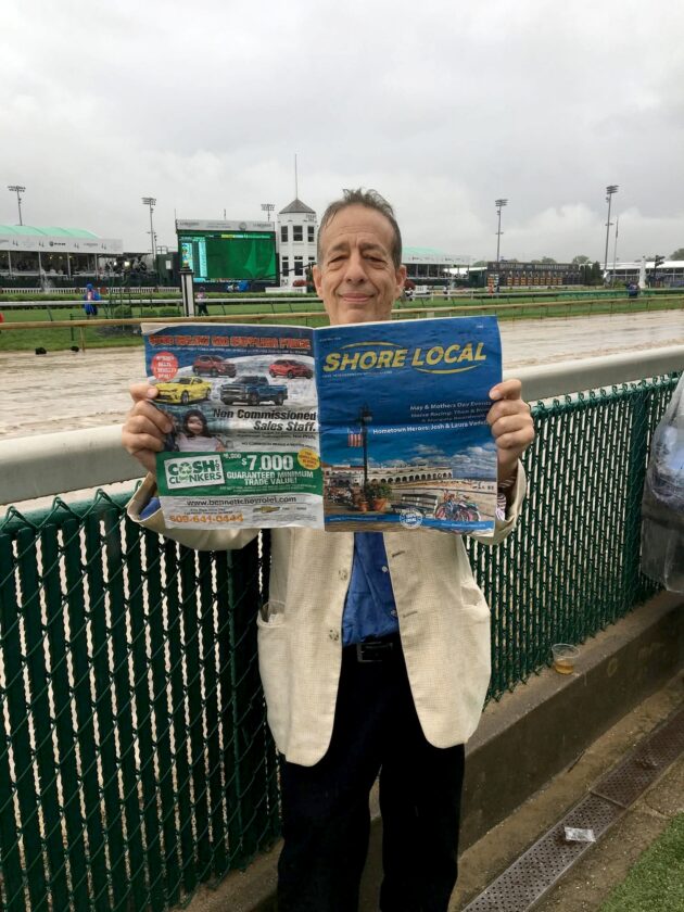 Mike Yanniello at Churchill Downs with his favorite newspaper.