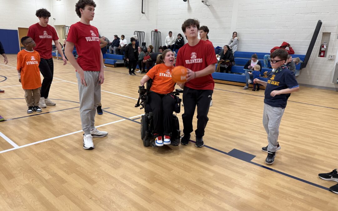 The program also offers a unique volunteer opportunity for local high school students. These volunteers, known as “red shirts,” help players during games with dribbling, shooting or moving up the court. They also station themselves under the baskets to grab rebounds and make sure players stay safe. It’s an experience that often leaves its mark on teen volunteers, and many return year after year — some even after they’ve gone off to college.