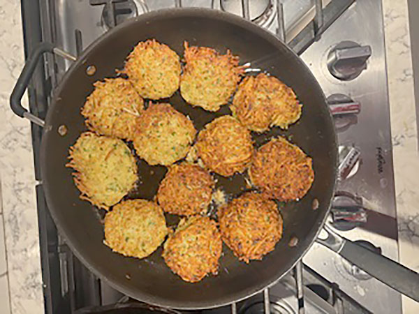 I’m happy to report that I’ve carried on the tradition, if not for every night of Hanukkah, then at least for the first night, or for our annual party with two other families. Store-bought latkes just aren’t the same. Mass-produced supermarket versions are only a reasonable option if you’re pressed for time. Yes, you can occasionally find a deli that does a decent job, but it’s a rare establishment that beats homemade.