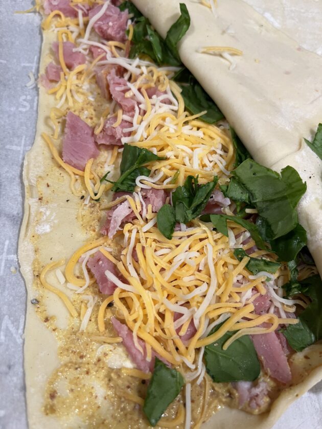 Lastly, you can fill puff pastry with leftover turkey, chicken, or ham as a tasty way to use up little bits of this and that. One holiday, we had a large ham that lasted for days. To make it “new again”, I layered puff pastry with ham, cheese, spinach, and stone-ground mustard. We had all of the ingredients on hand, and everyone enjoyed their “leftovers” meal.