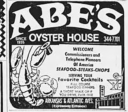 Abe’s was a darn good place to eat, and it hung on for a long time, despite competition from another seafood house just blocks away. Interestingly, no news stories could be found that reported on Abe’s closing, though those who frequented the restaurant say that it hung on until the early 1990s.