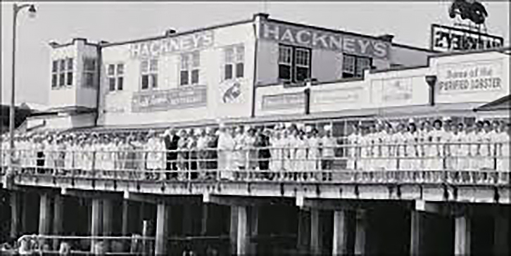 Hackney’s was rebuilt after the hurricane in 1944 and the March nor’easter of 1962, but a fire in 1963 did much more damage to the restaurant than the storms did.