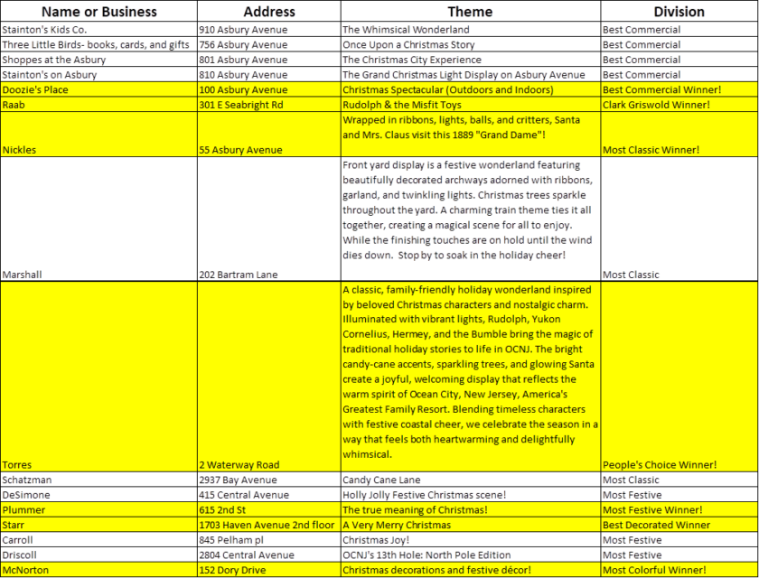 Winners and all entries are below and available here: www.ocnj.us/HolidayHouseDecorating.