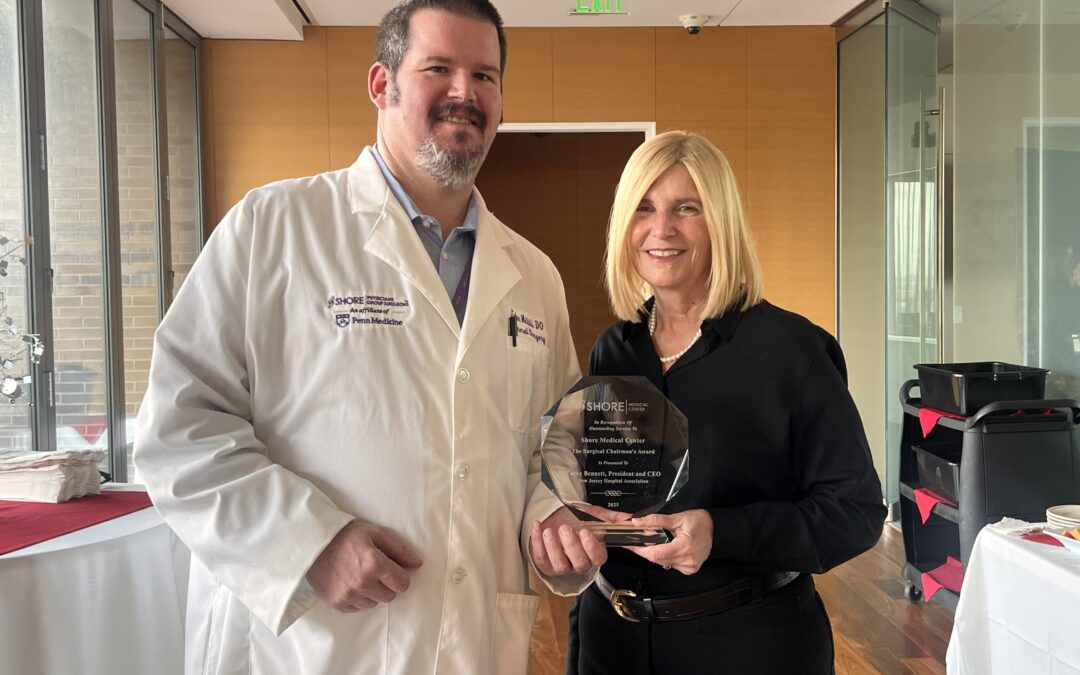 Presented annually by Shore’s Department of Surgery for the past 20 years, the Surgical Chairman’s Award honors individuals or organizations that have made a meaningful and lasting impact on Shore Medical Center and its mission. Bennett was recognized for her commitment to advocating for New Jersey hospitals in an increasingly complex healthcare environment—work that directly supports hospitals like Shore in delivering high-quality care to their communities.