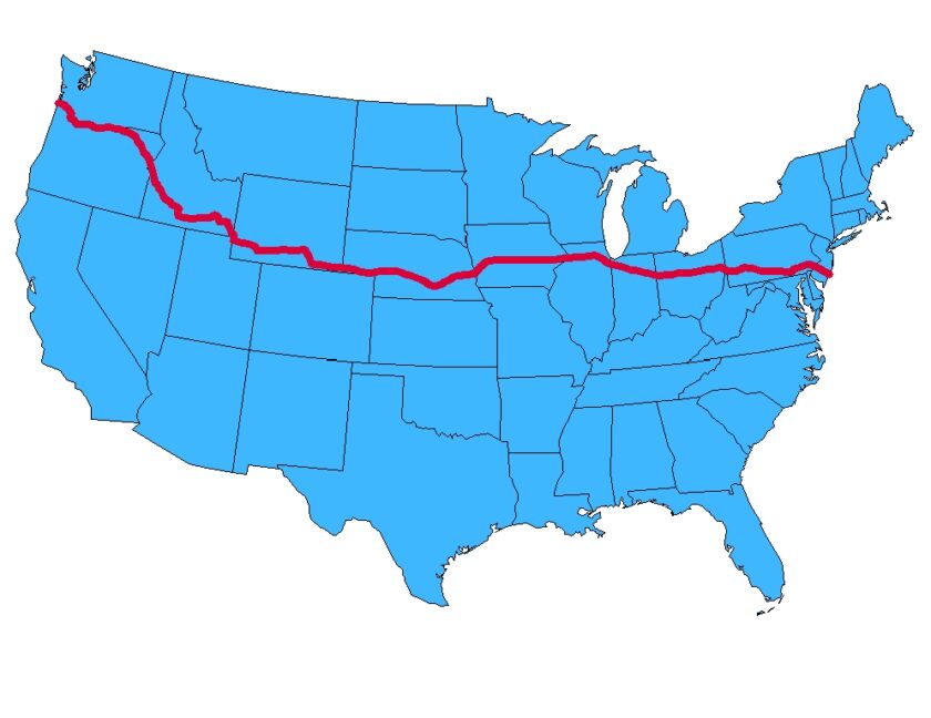 The highway begins at the eastern terminus in Atlantic City, following a route through the states of New Jersey, Pennsylvania, Ohio, Indiana, Illinois, Iowa, Nebraska, Wyoming, Idaho and Oregon, before reaching its western terminus in Astoria, a coastal city in Oregon.
